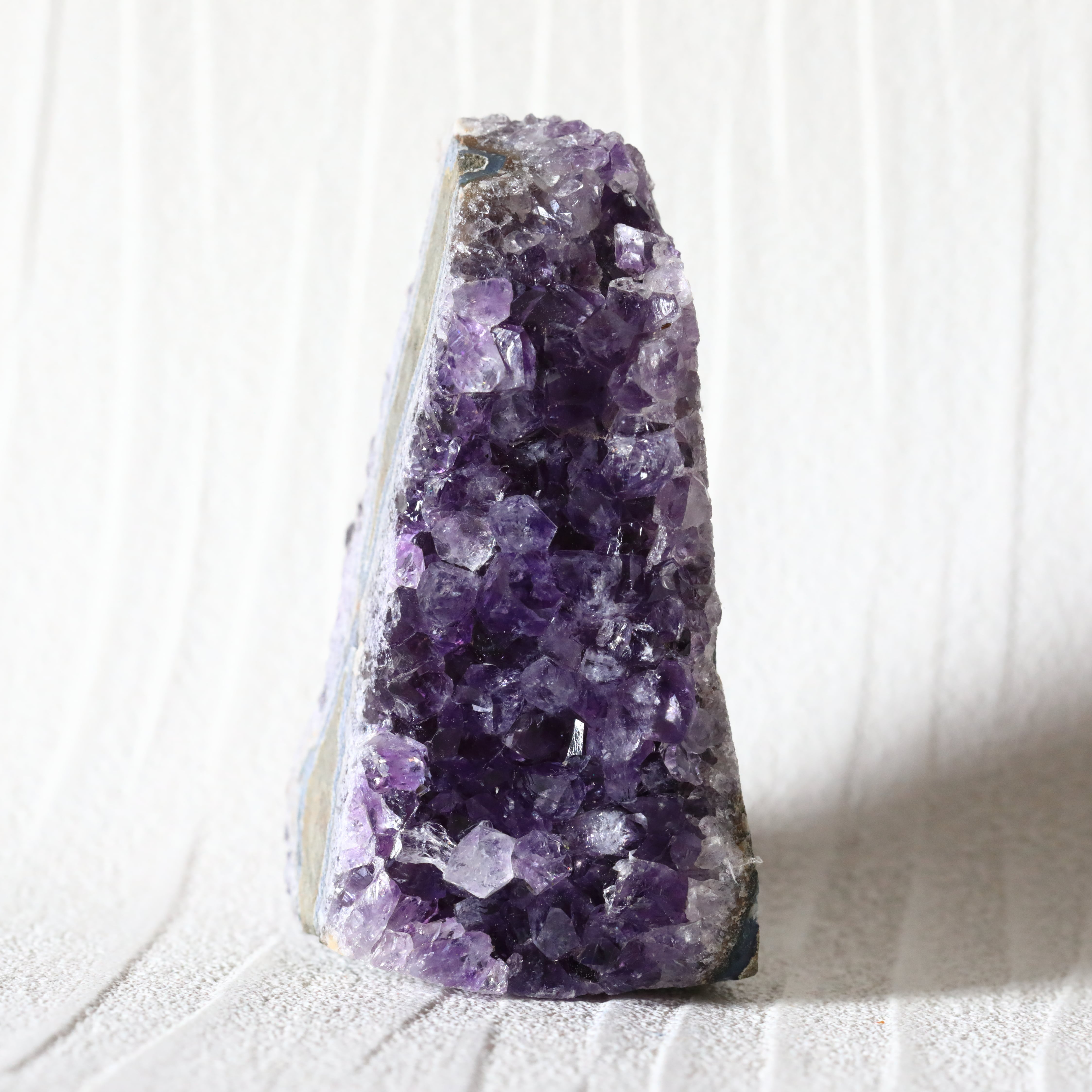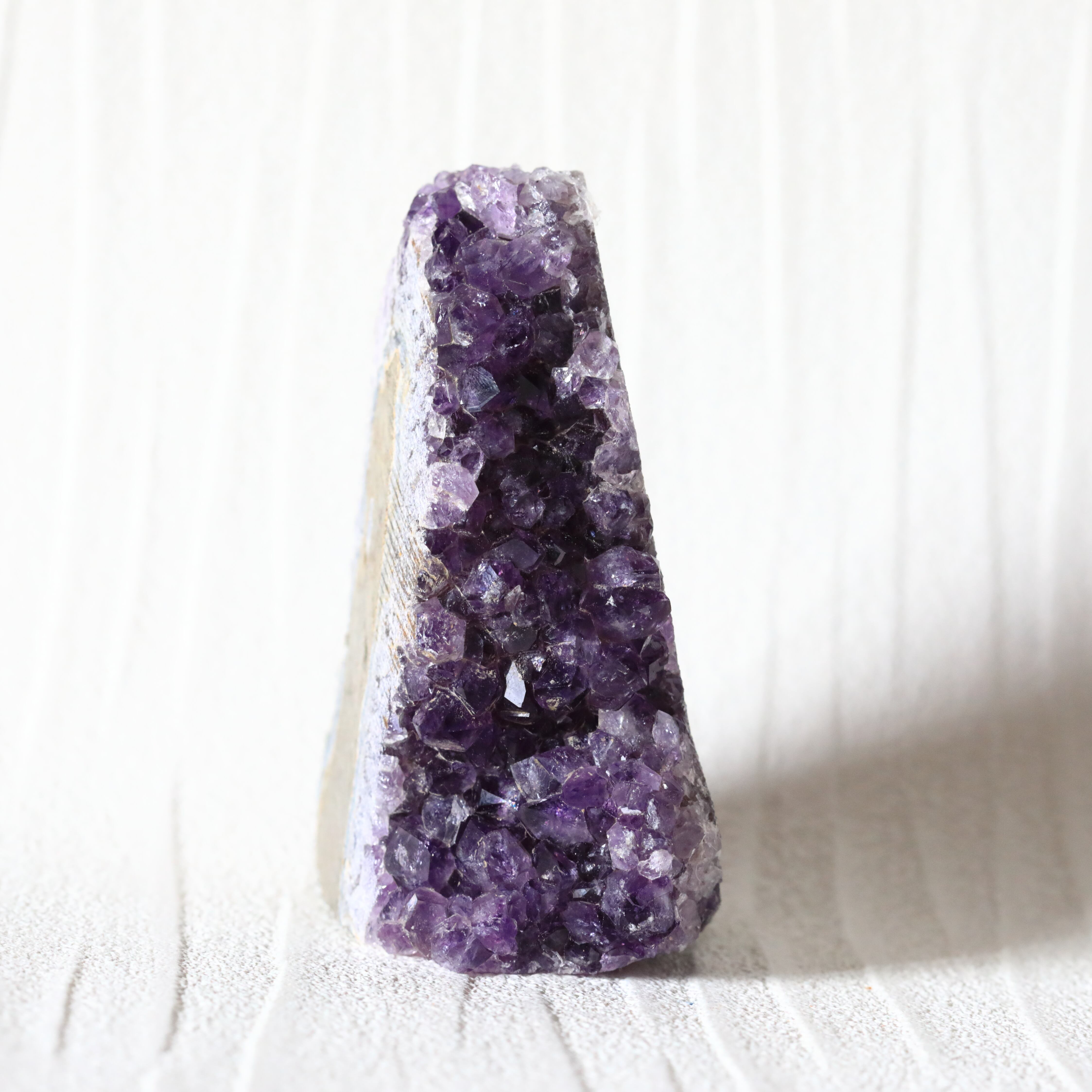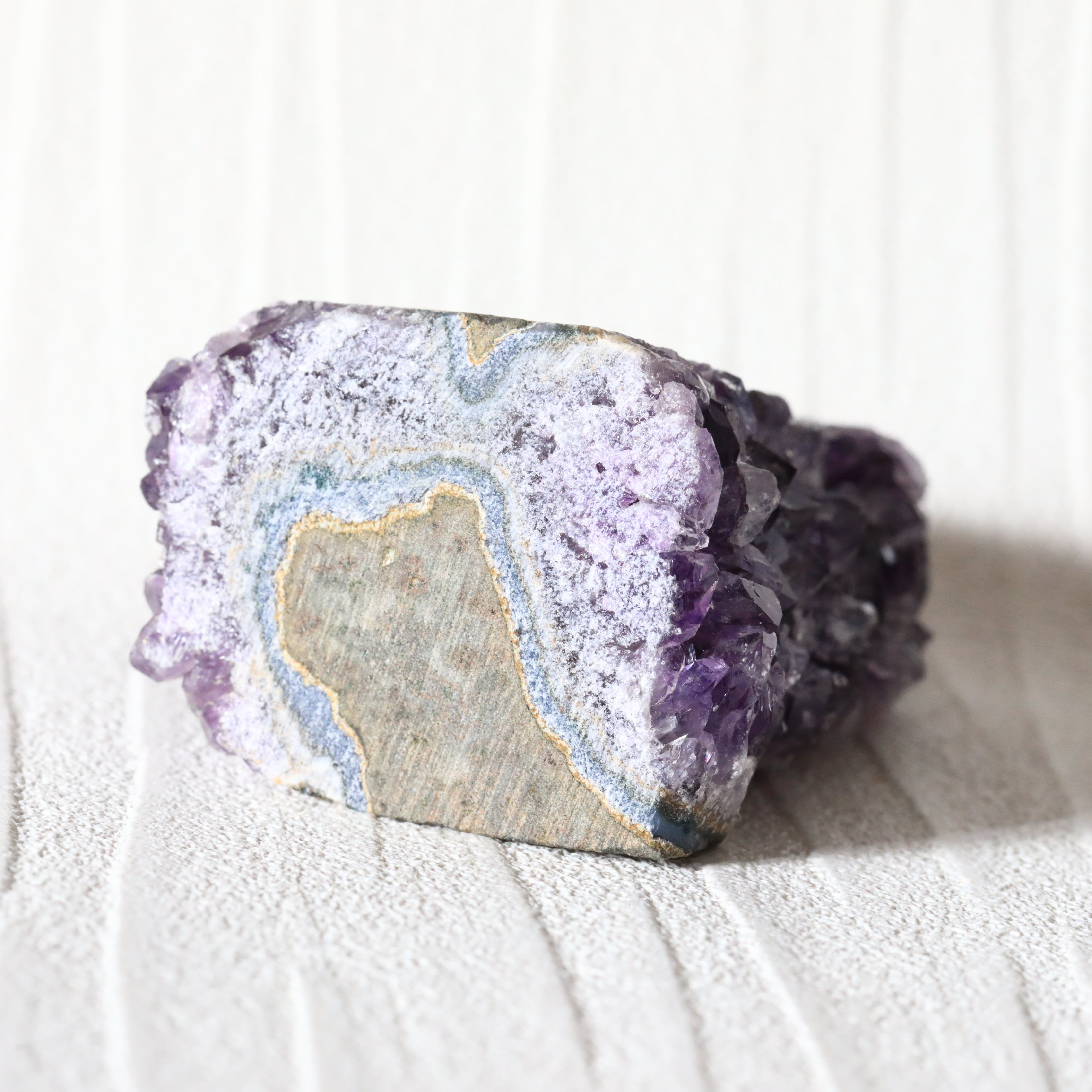 叡智と癒しの石、アメジスト。紫色は「高貴」「霊性」「癒やし」の象徴とされ、特に精神的な落ち着きと内観を促すエネルギーを持つとされています。