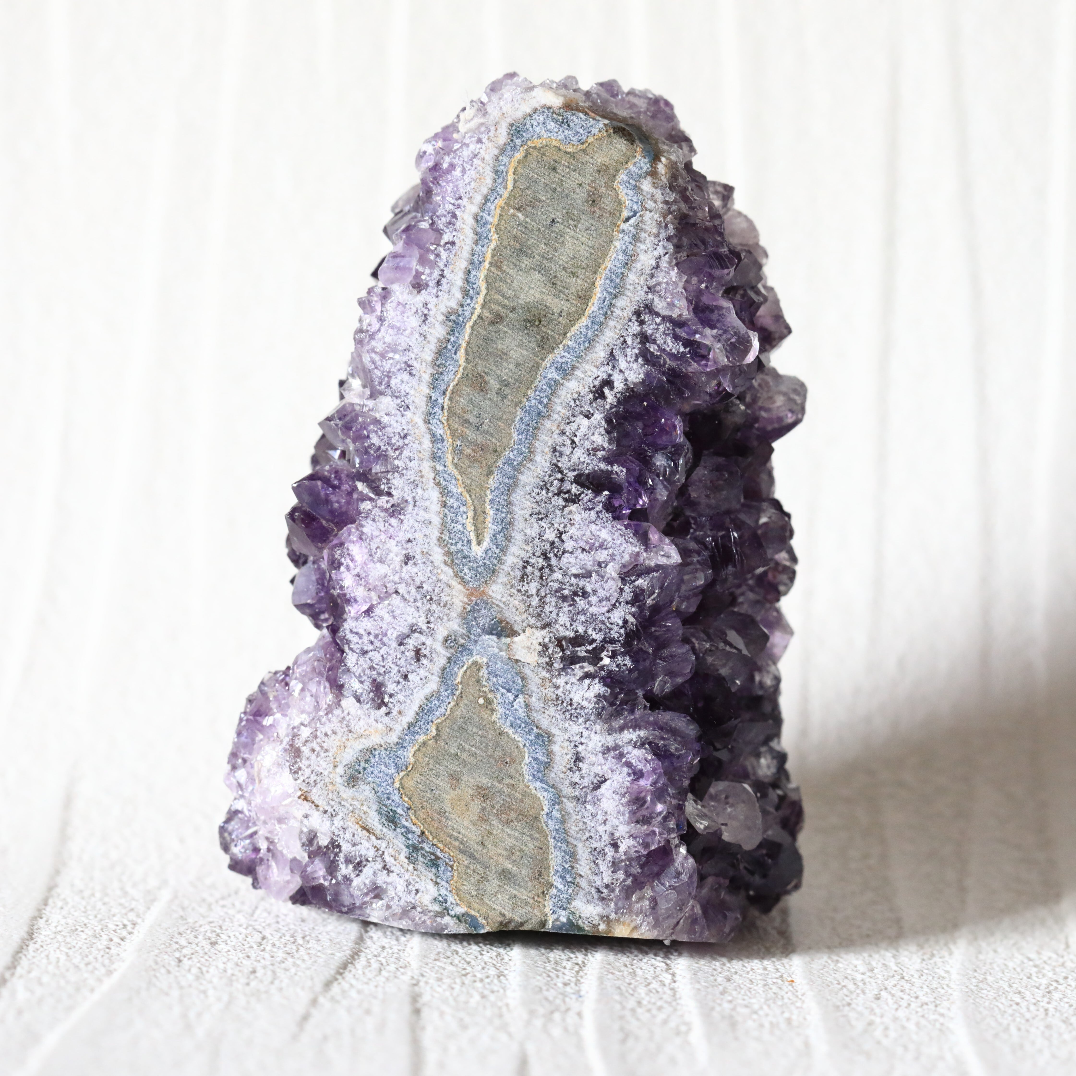 〔1点物/自立型クラスター〕✴︎天然石 インテリア 鉱物✴︎ アゲートウィンドウの断面美, 深い癒しの波動 希少 ウルグアイ産, Amethyst-アメジスト【A】
