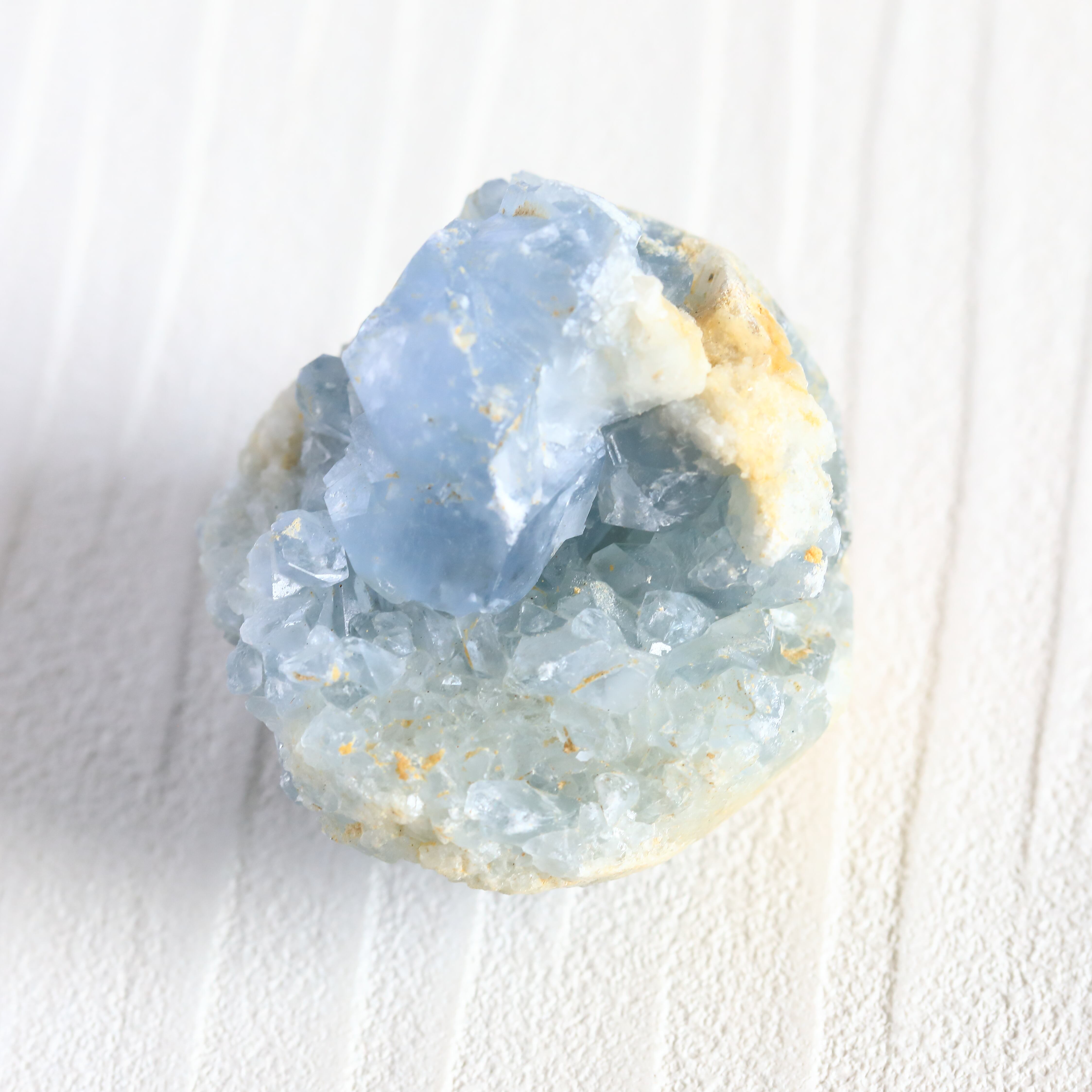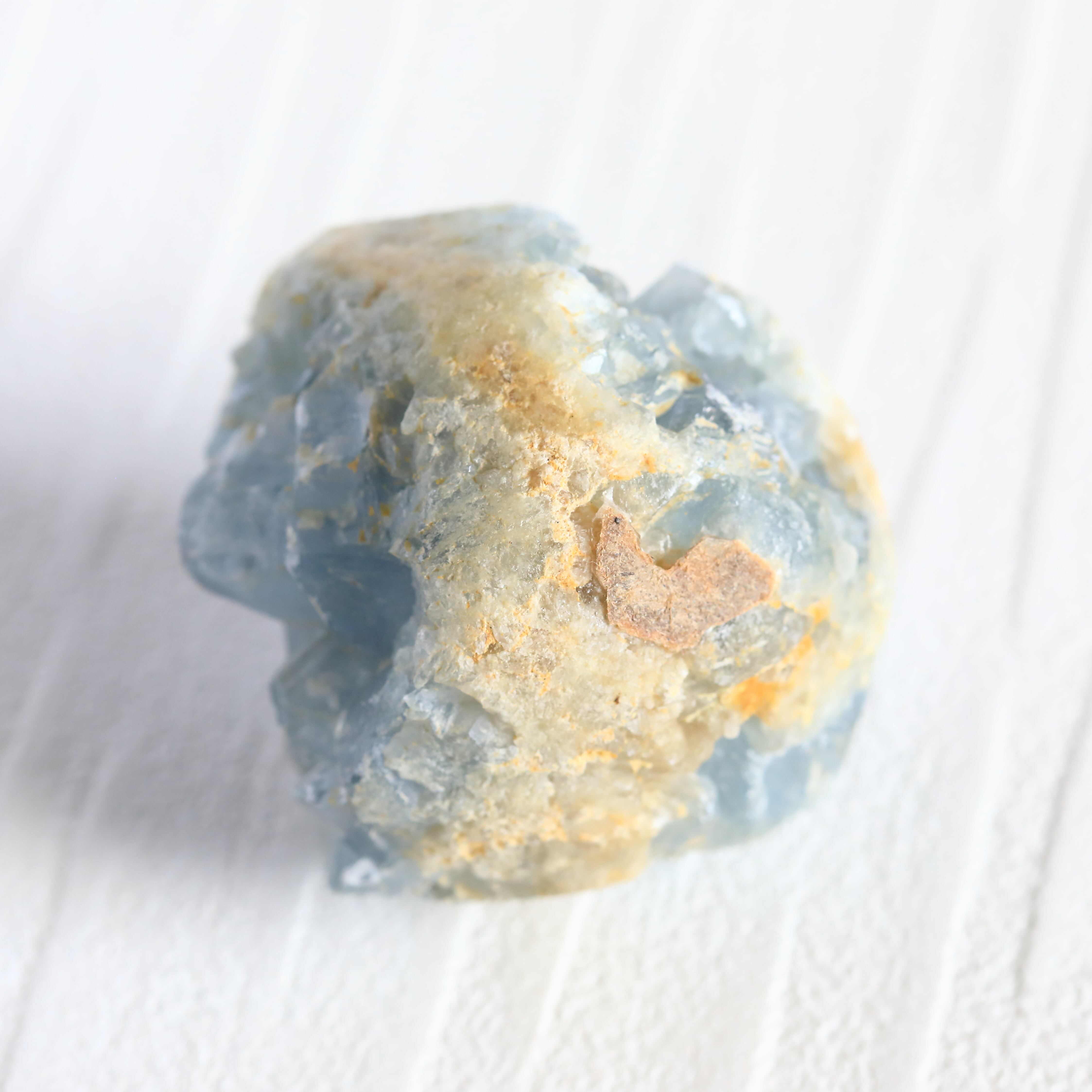 ※セレスタイトは硬度が低く非常に繊細な石です。衝撃はもちろん、水や太陽光にも弱い(退色や艶落ちの原因となります)ので、お取り扱いには十分お気をつけ下さい。また流水・太陽光による浄化もお控え下さい。